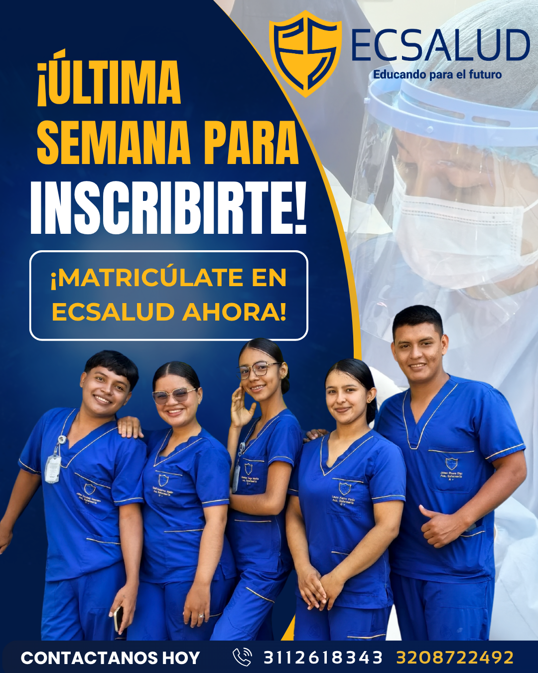 En ECSALUD transformamos vidas a través de la formación con calidad, ética y vocación. Somos una institución que prepara Técnicos Laborales altamente capacitados para impactar positivamente en el sistema de salud colombiano.